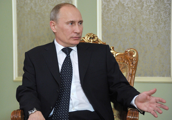 2012年5月31日,在白俄羅斯首都明斯克,到訪的俄羅斯總統(tǒng)普京與白俄羅斯總統(tǒng)盧卡申科(不在畫(huà)面中)會(huì)談。當(dāng)日,新任俄羅斯總統(tǒng)普京抵達(dá)白俄羅斯,開(kāi)始為期2天的正式訪問(wèn)。這是普京上任以來(lái)的首次出訪。圖片:新華社/法新