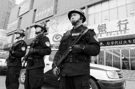 鄭州派出500名荷槍實彈特警駐守銀行網(wǎng)點保民安