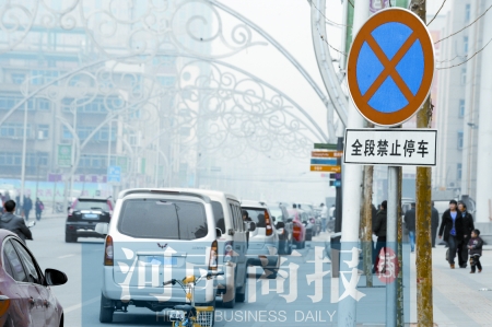 鄭州人和路的“全段禁?!睒?biāo)志下停了幾十輛車(chē)