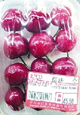 在批發(fā)市場上就能賣出120元/斤的高價,進(jìn)了超市就更是“貴族身份”。在青島的香港中路一超市,用保鮮膜包裝好的櫻珠,售價高達(dá)158元/斤。隨手拿起一盒,記者看到11顆櫻珠竟然賣到了47.4元 ,平均下來一顆4.3元。