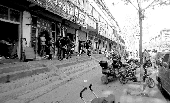 在潁河西路,道路兩側(cè)的機(jī)動(dòng)車(chē)隨意停放,路面污水橫流、垃圾到處都是,路南側(cè)的商戶(hù)更是將非機(jī)動(dòng)車(chē)道全部占用。