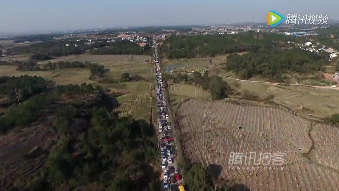 航拍農(nóng)村拜年車(chē)隊(duì)堵爆馬路