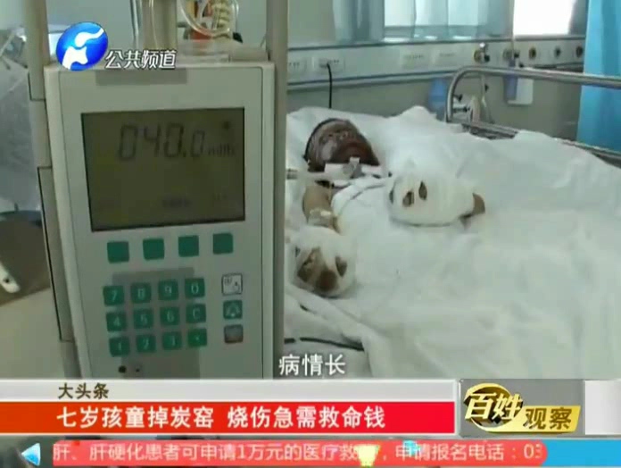 濮陽男童掉炭窯臉被燒成黑炭