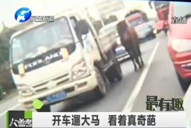 奇葩司機馬路上開車遛馬