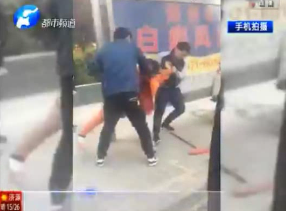 兩男子當(dāng)街圍毆女環(huán)衛(wèi)工 遭圍觀群眾暴打