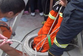 男孩誤墜井消防倒掛金鉤救人