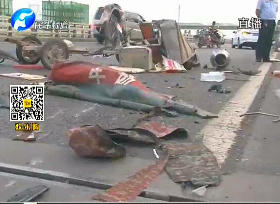 電動(dòng)三輪車(chē)上高速被撞成碎片