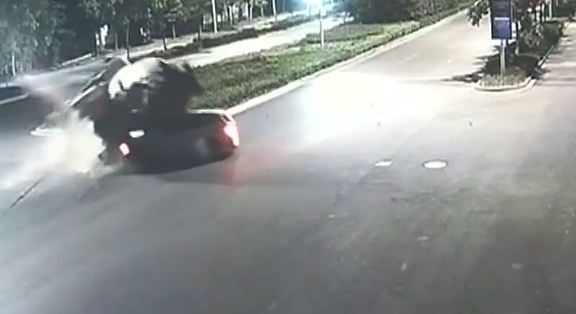 槽罐車側(cè)翻壓扁寶馬車