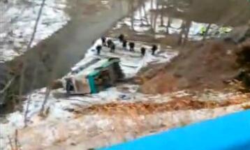客車坐滿學生 翻進深溝