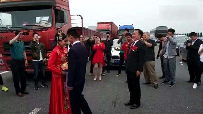 高速上結婚誰見過?新郎接親遇堵車 高速現場拜天地