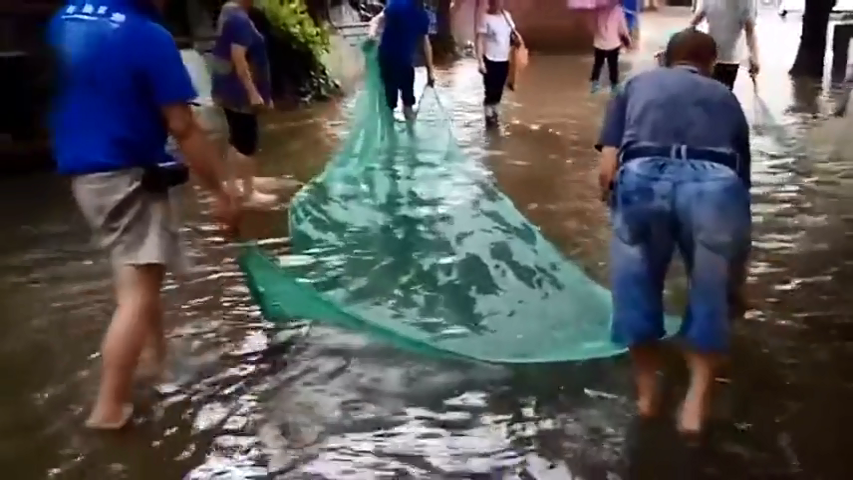 臺風過境佛山 市民上街撈魚