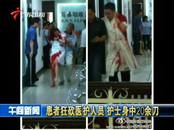 9月3日上午,一名43歲的男子在深圳鵬程醫(yī)院候診時(shí)突然拔出菜刀,將一名耳鼻喉科醫(yī)生砍傷后,再傷一名女導(dǎo)醫(yī)和一名保安,隨后挾持一名護(hù)士狂砍,護(hù)士身中20余刀。目前,4人均被送醫(yī)院治療,暫無(wú)生命危險(xiǎn)。據(jù)了解,當(dāng)事男子曾在該醫(yī)院找當(dāng)事醫(yī)生看過(guò)鼻炎,因治療效果不明顯,懷恨在心,昨日攜帶4把刀到醫(yī)院報(bào)復(fù),目前其已被警方刑事拘留。