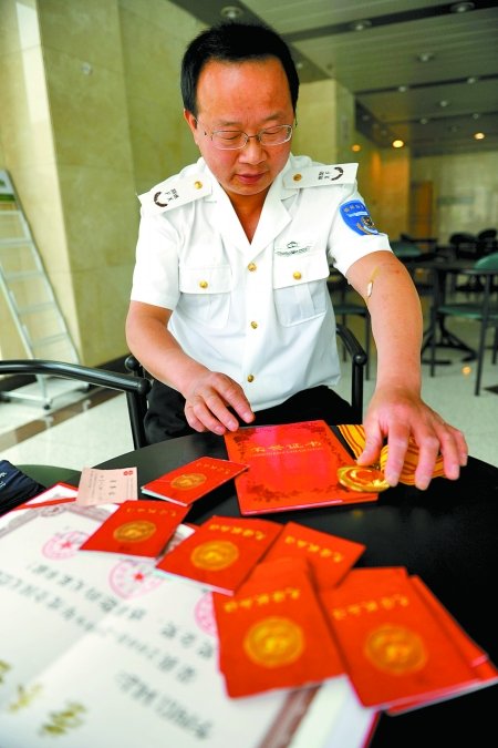 雖說他熱衷于為大河報(bào)提供新聞線索,但提起自己的獻(xiàn)血經(jīng)歷卻不想多說。在記者的反復(fù)詢問下,李四信說,他于2002年1月開始第一次獻(xiàn)血。當(dāng)時(shí),他與朋友在二七廣場附近游玩時(shí)看到一輛采血車,出于好奇就去獻(xiàn)了400毫升全血,因?yàn)槭呛檬拢I(xiàn)過后自己很開心。從那以后,自己對獻(xiàn)血便“上了癮”,剛開始按獻(xiàn)全血的規(guī)定,每隔半年獻(xiàn)一次,一次400毫升;后感覺獻(xiàn)全血隔的時(shí)間有點(diǎn)長,就開始獻(xiàn)成分血,一個(gè)月就可以獻(xiàn)一次。其間,他獲得過鄭州市紅十字會(huì)、中國紅十字會(huì)總會(huì)等多個(gè)部門頒發(fā)的獻(xiàn)血榮譽(yù)證書。