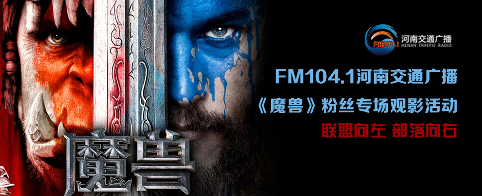 河南交通廣播《魔獸》電影粉絲觀影會(huì)入場(chǎng)券也將通過(guò)節(jié)目發(fā)放,周一到周五晚上18:00—19:00鎖定FM104.1馬路歡樂(lè)派節(jié)目,我們會(huì)不定時(shí)發(fā)放入場(chǎng)門票。