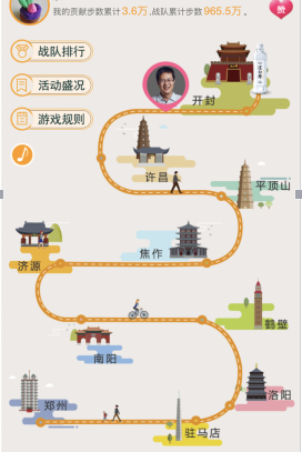 在河南十大名嘴戰(zhàn)隊(duì)中選擇一個(gè)你要支持的戰(zhàn)隊(duì)加入,即可為該戰(zhàn)隊(duì)捐贈(zèng)當(dāng)天的微信運(yùn)動(dòng)步數(shù),該戰(zhàn)隊(duì)獲得用戶捐贈(zèng)步數(shù)后可在規(guī)定的線路中前進(jìn),到達(dá)終點(diǎn)為獲勝。