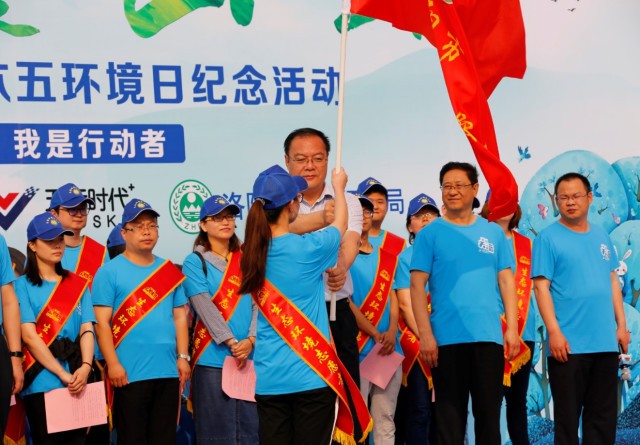 李保興副市長(zhǎng)為堅(jiān)守在環(huán)保路上的洛陽(yáng)市生態(tài)環(huán)境志愿服務(wù)隊(duì)的志愿者授旗↑↑