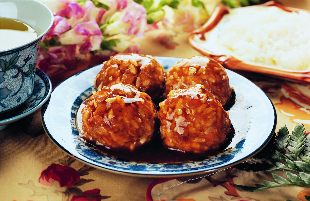 四喜丸子是一道知名豫菜,是以精瘦肉及碎饅頭等為主料經(jīng)油炸八成熟,放入碗內(nèi)加高湯蒸熟即成,每碗放四個(gè)。由于油炸過(guò)后又加水蒸過(guò),吃起來(lái)鮮而不膩,酥嫩爽口,香味濃郁又利于消化。