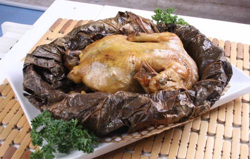“叫化雞”原出于浙江杭州,是一些窮苦難民即“叫化子”或偷或討來(lái)的雞,經(jīng)過(guò)燒熱的土句熟而成,本是不登大雅之堂街頭菜。當(dāng)年那位清乾隆皇帝微服出訪江南,不小心弄得破衣爛衫流落街頭。其中一個(gè)叫化子頭看他可憐,便把自認(rèn)為美食的“叫化雞”送給他吃,乾隆困餓交加,當(dāng)然覺(jué)得這雞異常好吃,急問(wèn)其名,叫化頭不好意思說(shuō)這雞叫“叫化雞”,便胡吹這雞叫“富貴雞”。乾隆就說(shuō)這“富貴雞”好吃。