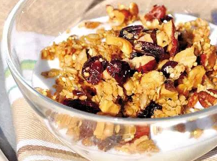 每天的小加餐可以避免由于血糖濃度過低造成的疲勞感。需要注意的是,加餐并不是讓你不停的吃東西,因為過多的消化負(fù)擔(dān)會讓你感覺到困倦。魚片、堅果、酸奶、麥片等都是不錯的選擇,它們所含的蛋白質(zhì)和碳水化合物會使你的血糖濃度上升,從而使你感覺振奮,并且可以減低對于甜食的渴求。
