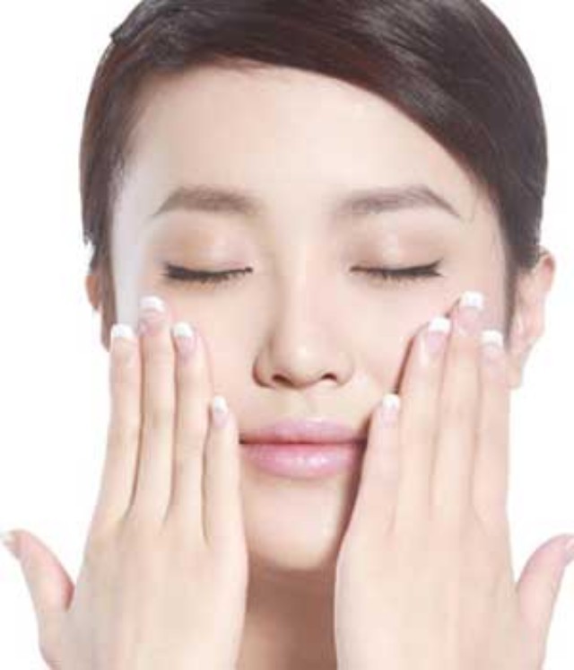 STEP 1:用雙手十指按壓顴骨的最高點(diǎn),然后嘴里念出字母“O”的音,這樣有利于鍛煉頰骨肌。然后再用相同的手指按壓法,按住顴骨的最高點(diǎn),嘴里念出字母“E”的音,這個時候能明顯感覺到臉部變得緊實(shí)了。堅持以上的兩個動作各30次。