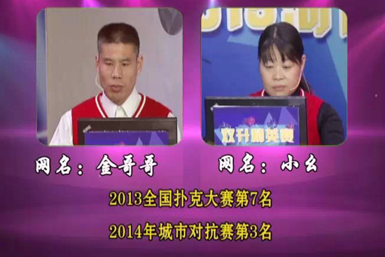 今天將要進行的是2015河南省電視雙升精英賽,這也是繼2014城市對抗賽之后進行的個人競技比賽,所有參賽選手,都是各地市參加城市對抗賽的優(yōu)秀牌手,今天進行的是上半?yún)^(qū)第1輪的第場比賽,是由新鄉(xiāng)推選的“溪水”和“雙升找我”對陣來自濟源推選的“小幺”和“金哥哥”。今天雙方選手都是信心百倍,誓要拿系第一場,究竟結(jié)果如何呢?今晚21點40分《雙升英雄會》為您揭曉答案!