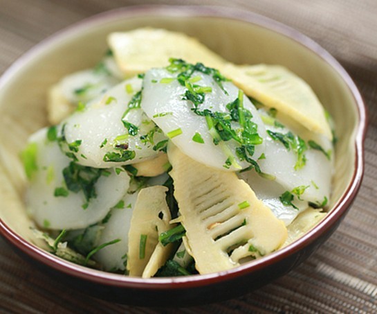 咸肉用清水浸泡半小時后切丁,春筍切絲,薺菜洗凈切末。鍋中放少量油,油熱后加咸肉丁翻炒至肥肉部分半透明,下筍絲煸炒至香。然后倒入年糕片翻炒,加少許清水、鹽,炒至年糕軟身。最后下薺菜,翻炒均勻后,加少許雞精即可。