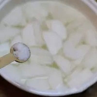 3. 把蘿卜片放入鍋中,倒入足量的水。