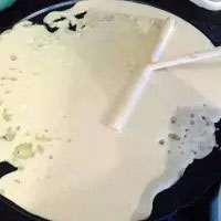 4. 煎餅鍋加熱放油,刷均勻。沒有煎餅鍋,用各種可以加熱的平底鍋也是可以的。