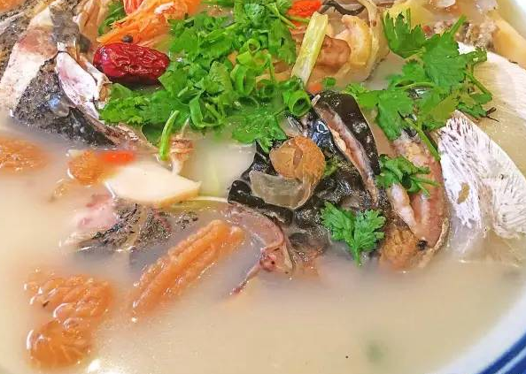 八寶燉魚頭是一道薄山湖名菜,此菜燙汁奶白、肉質(zhì)鮮美。