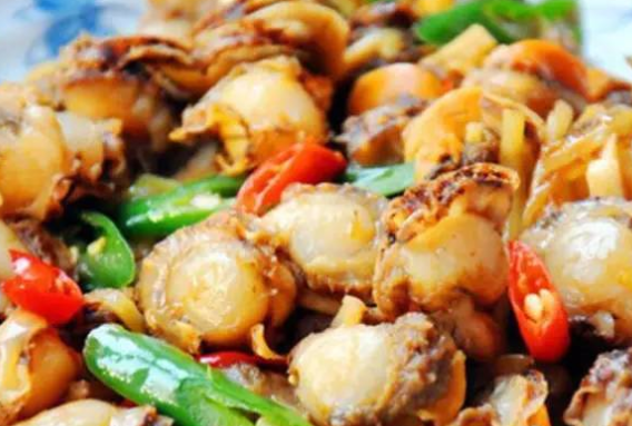 1.新鮮扇貝肉洗凈,用清水泡半小時(shí)。蒜、蔥改刀切絲、辣椒切小段。