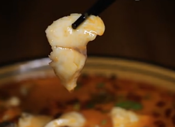 夾起一塊魚肉,肉質(zhì)緊實,邊緣微微卷起,入口一嘗,魚肉滑爽細(xì)嫩,由于大廚還加入了酸菜,所以麻辣的湯汁中還帶著幾分酸爽,非常的開胃。