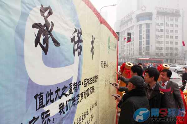 上午,以河南豐富的農(nóng)業(yè)特產(chǎn)濟(jì)源為優(yōu)勢(shì),匯集中原名優(yōu)特產(chǎn)的“河南九之星特產(chǎn) 品味生活館”在鄭州市黃河路與經(jīng)三路口正式開(kāi)門(mén)營(yíng)業(yè)。河南影視集團(tuán)董事長(zhǎng)宗樹(shù)潔、省農(nóng)業(yè)廳副巡視員魏仲生、河南電視臺(tái)新農(nóng)村頻道總監(jiān)張克宣出席并為為開(kāi)業(yè)儀式剪彩,九之星總經(jīng)理肖俊德和公司員工并在商品質(zhì)量承諾保證書(shū)上鄭重簽字。