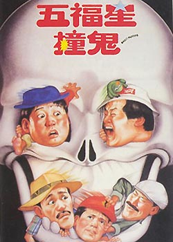 一次,他們五人一同去旅游勝地——離島游玩,卻不料晚上在島上的一棟黑漆漆的大屋內撞到一男一女兩個鬼魂。第二天,他們向有關警局報了警,誰知被派去捉鬼的女警察不但沒抓住鬼,帶隊的警察局幫辦梁招弟還被鬼上了身,附了體,無功而返。警察局胡警官與幫辦梁招弟甚至懷疑五人有販毒集團背景,暗中布控監(jiān)視。