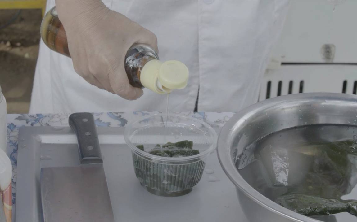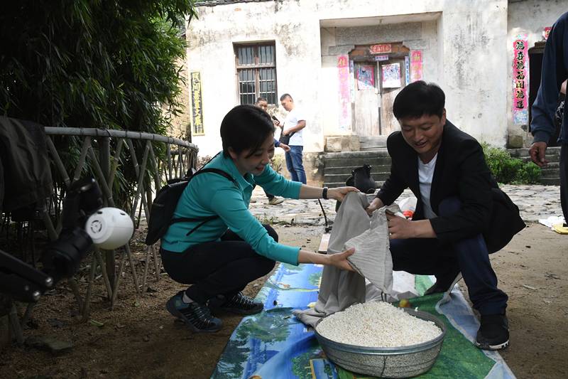 跟著張思恩,吳學(xué)蘭見(jiàn)到了在路邊擺攤的村民張因祿、王佳梅夫婦,他們制作的是一種西河灣的特色美食——觀音豆腐。綠色的豆腐讓吳學(xué)蘭非常好奇,品嘗了一碗之后,吳學(xué)蘭立即對(duì)觀音豆腐獨(dú)特的口感贊不絕口。吃完美食之后,吳學(xué)蘭一邊體驗(yàn)“觀音豆腐”的制作過(guò)程,一邊和王佳梅夫婦攀談了起來(lái)。原來(lái),他們一家是村里的貧困戶。幾年前的一天,他們?cè)诒本┐蚬r(shí),偶遇了老鄉(xiāng)張思恩,在張思恩的勸說(shuō)下,開(kāi)始回村里創(chuàng)業(yè)。如今,他們制作“觀音豆腐”的小攤一天能收入一百多元,在家門(mén)口實(shí)現(xiàn)了脫貧致富。