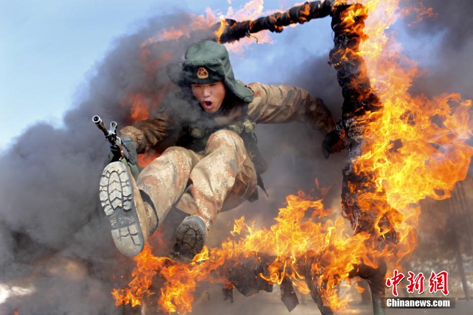 3月5日,黑龍江省軍區(qū)邊防某團官兵正在進行跨越火圈的實戰(zhàn)訓(xùn)練。該部結(jié)合未來邊境作戰(zhàn)特點,設(shè)置模擬化戰(zhàn)場環(huán)境,營造硝煙滾滾、槍林彈雨、炮聲隆隆的實戰(zhàn)氛圍,從難從嚴從實戰(zhàn)角度出發(fā),深化“仗怎么打、兵怎么練”的實戰(zhàn)練兵力度,著力提升部隊實戰(zhàn)條件下的作戰(zhàn)能力,錘煉官兵敢打硬拼的過硬戰(zhàn)斗作風(fēng)。中新社發(fā) 魏建順 攝