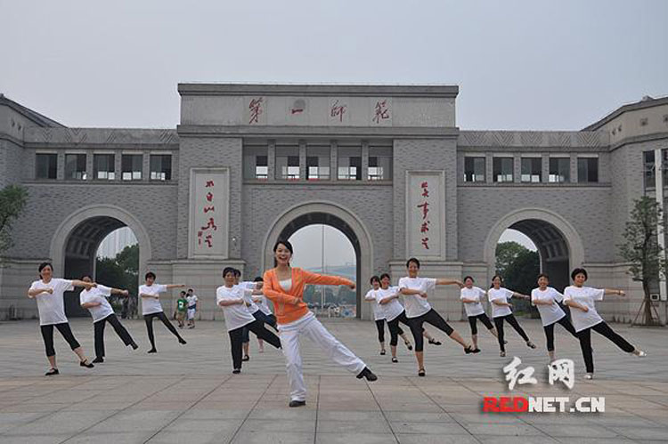 紅網(wǎng)長(zhǎng)沙訊(記者廖潔)沒有吵鬧的音樂,動(dòng)作優(yōu)雅舒展,6月13日傍晚,在湖南第一師范學(xué)院前坪,中老年教師們練習(xí)的一種特別的廣場(chǎng)舞十分引人注目。