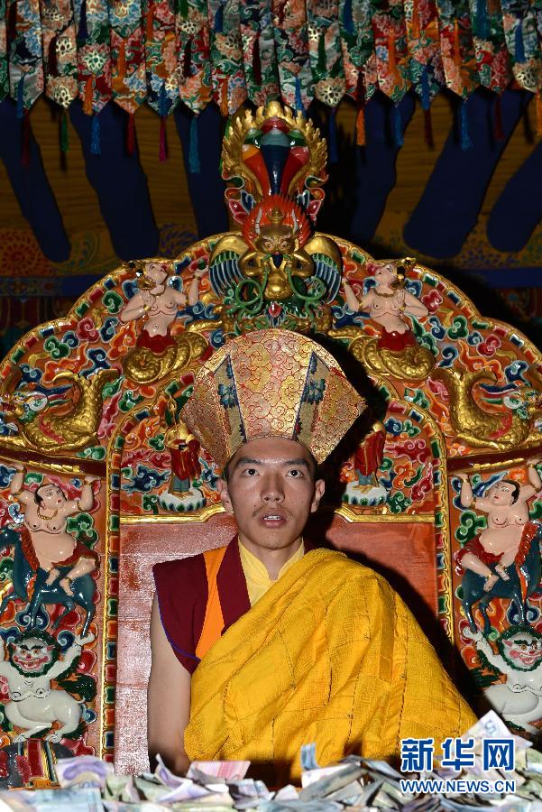 夏仲活佛1997年6月28日生于西藏那曲地區(qū)嘉黎縣阿扎鄉(xiāng),俗名索朗頓珠,2001年被認(rèn)定為第二十二世夏仲活佛的轉(zhuǎn)世靈童。夏仲活佛說,佛教就是佛陀對一切有情眾生至善圓滿的一種教育。因此,他在心里放著一個愿望,希望自己一心一意傳授佛法,讓所有人都能領(lǐng)悟其中的精髓。新華社記者 覺果攝
