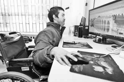 來福利院時,他帶來了心愛的“寶貝”,是爺爺為他買的電腦。從小到大,輪椅上的他,自學電腦,并通過電腦了解到外面的世界。