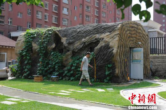 吉林省長(zhǎng)春市近來出現(xiàn)一所外形酷似樹墩的公共廁所,引來很多市民的關(guān)注。這座公廁乍一看去像是一尊巨大的樹干,長(zhǎng)約十米左右,直徑約四米。張瑤 攝