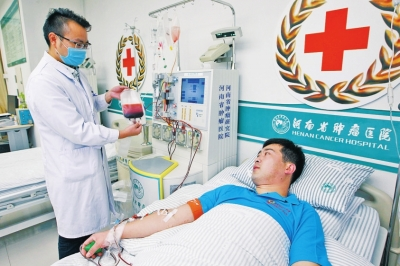 “上午8點半開始采集,3個小時順利結束。”昨天上午,來自焦作沁陽的33歲退伍兵張國強,在河南省腫瘤醫(yī)院造血干細胞采集室成功捐獻造血干細胞混懸液194毫升。