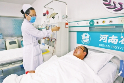 “患者在生死線上掙扎著,咱得救人一命?!弊蛱焯稍诤幽鲜∪嗣襻t(yī)院造血干細胞采集室床上,范連軍笑著說。