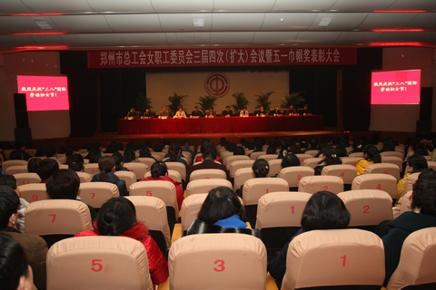 3月6日,在“三八”國際勞動(dòng)?jì)D女節(jié)即將到來之際,鄭州市總工會召開全市五一巾幗獎(jiǎng)表彰大會,市人大副主任、市總工會主席李元法,省總工會女職工部副部長張莉莉,市婦聯(lián)常務(wù)副主席于素云,市總領(lǐng)導(dǎo)班子全體成員以及來市總工會第三屆女職工委員會委員、縣(市)區(qū)、直屬工會分管女職工工作的負(fù)責(zé)同志、女職工部長或女職工工作負(fù)責(zé)人,基層工會女職工干部代表、受表彰的先進(jìn)集體、先進(jìn)個(gè)人代表共計(jì)400多人參加了大會。大會由市總工會常務(wù)副主席陳觀壤主持,分別由市總領(lǐng)導(dǎo)侯振家、李建霞、林增志宣讀鄭州市總工會第三屆女職工委員會增、替補(bǔ)委員的決定,授予女職工素質(zhì)教育培訓(xùn)基地的決定,五一巾幗獎(jiǎng)表彰決定。市總工會女職工委員會主任靳榮欣做工作報(bào)告。