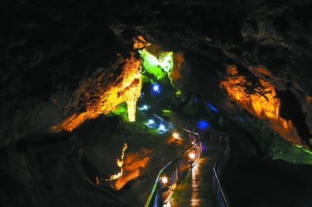 您不必?fù)?dān)心洞內(nèi)空氣凝聚、沉悶不堪,大自然的鬼斧神工定是完美無缺——洞內(nèi)有一處天然通風(fēng)口直穿山體,同外界相連,山風(fēng)灌入,涼爽舒適。漫步洞內(nèi),細(xì)心的您會(huì)感受到絲絲清涼游弋在身邊,似湖中漣漪,蜻蜓點(diǎn)水,盡管就那么一下下,足以令人心曠神怡,陶醉其中!