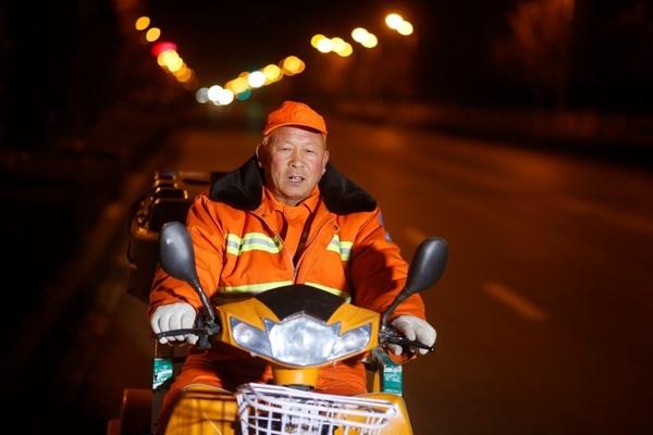 2017年1月12日,04:30,此時室外溫度-2℃ 。62歲的環(huán)衛(wèi)工人唐師傅穿著黃色環(huán)衛(wèi)工作服,帶上清掃工具,騎上電瓶車,準備出門,開始一天的工作。