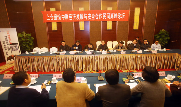 12月13日上午,北京河南大廈四層中原廳內(nèi)高朋滿座,思想碰撞,創(chuàng)意迭出。由河南省新聞出版廣電局、北京河南大廈主辦,大象融媒·大象智庫、大象融媒·猛犸新聞 、香港天溯智庫承辦的“上合組織和中原經(jīng)濟發(fā)展安全與合作2015民間高峰論壇”在這里成功舉辦。中國上海合作組織國家研究會中心高級顧問王海運少將等一批國際區(qū)域經(jīng)濟、安全合作領(lǐng)域的國家級研究專家和有影響力的實戰(zhàn)派“大咖”圍繞“國際新格局下上合組織的新使命”、“一帶一路戰(zhàn)略的安全保障”、“一帶一路戰(zhàn)略中的中原企業(yè)與地方政府優(yōu)劣勢”、“ 中原企業(yè)在上合組織成員國的商機與風險”等話題展開高端座談。